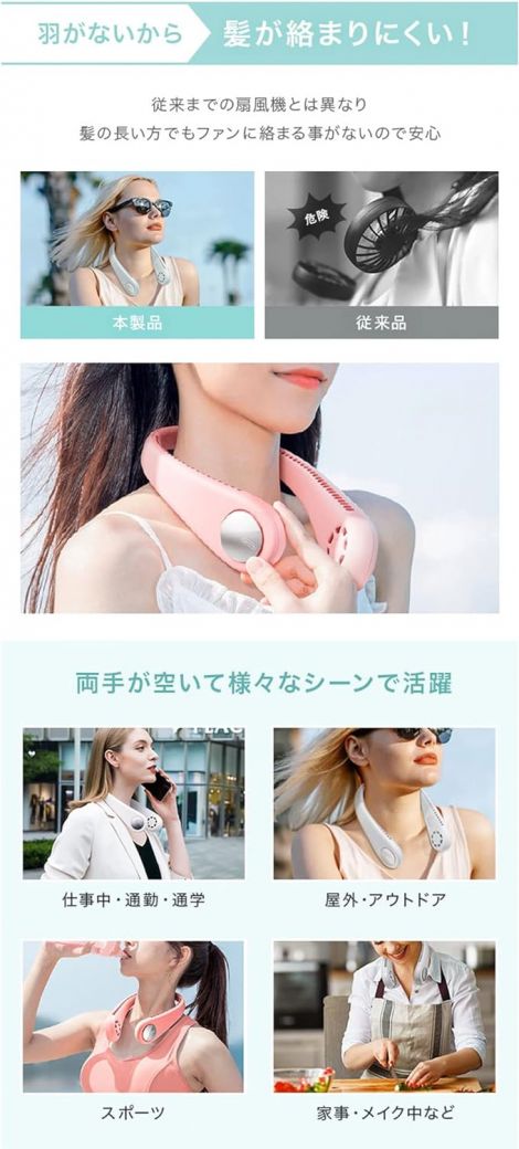 扇風機 首かけ 首掛け ネックファン 2022 首かけ扇風機 首掛け扇風機 ハンズフリーファン 羽なし ハンディファン ハンズフリー ネッククーラー 首掛けファン】 360度冷却 ネックバンドファン