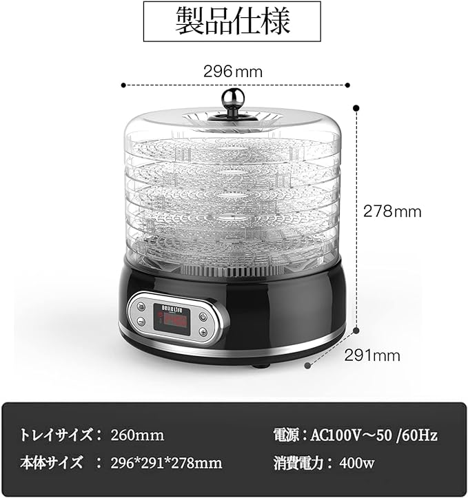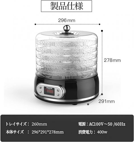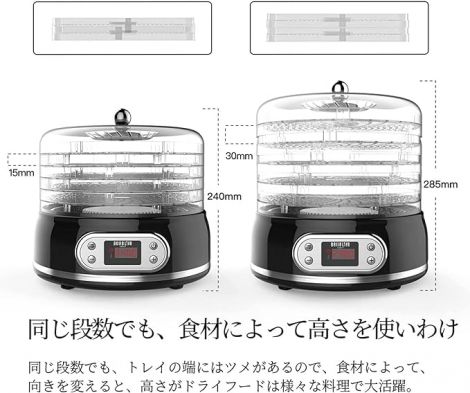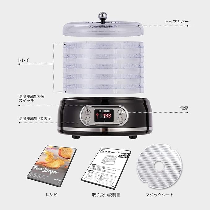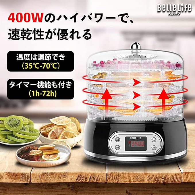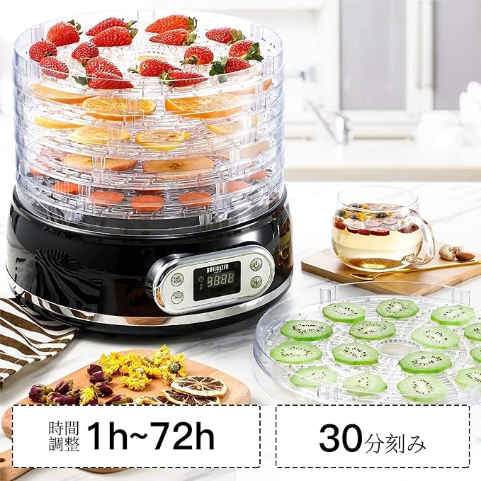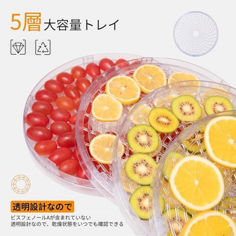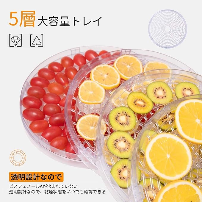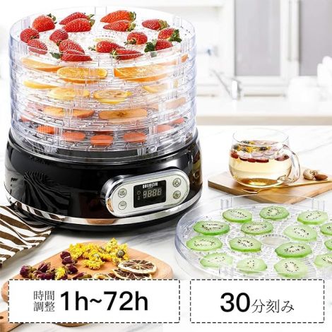 フードドライヤー タイマー付き 食品乾燥機 野菜乾燥機 電気食品脱水機 5層大容量 35℃から70℃までの温度設定 1時間~72の時間設定 ヘルシー ドライフードメーカー 家庭用 レシピ